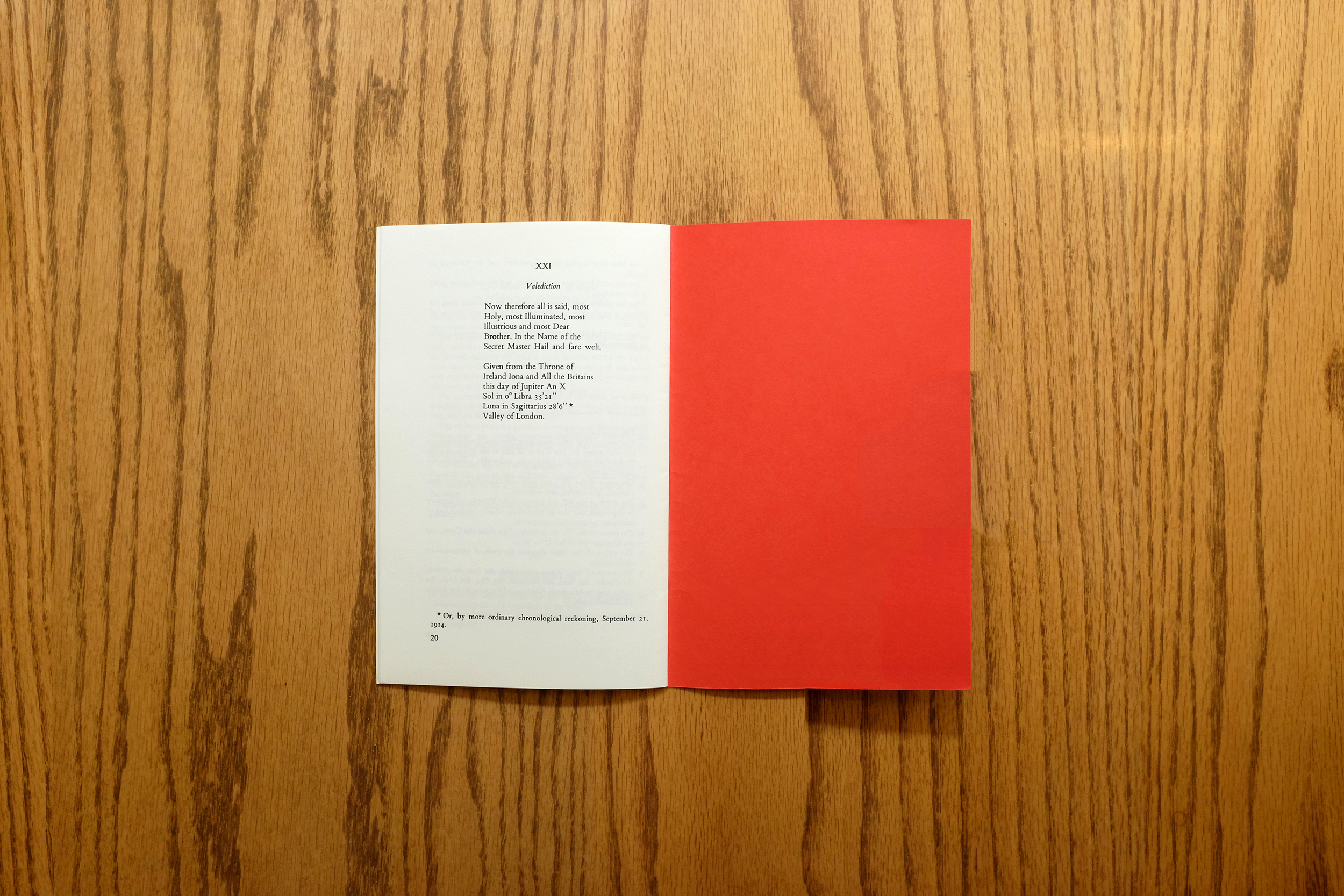 Excellent copy. Previous owner’s signature and O.T.O. sigil(!?) written on interior. Sticker residue on lower reverse cover. Otherwise clean and tight.
